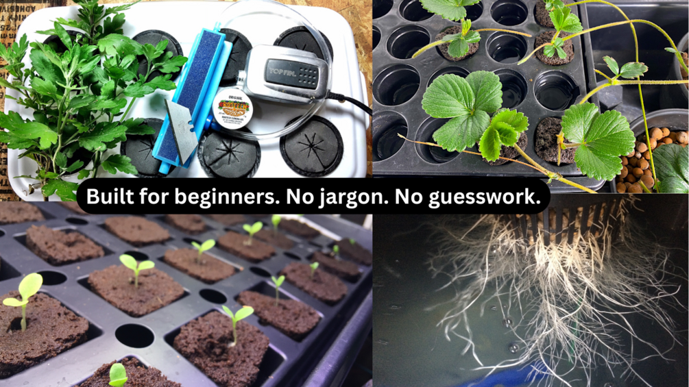 I’ve put it all into one easy-to-follow guide that cuts through the jargon and shows you exactly how to get your hydroponic garden started AND make it to harvest.